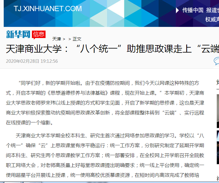 新华网、《天津教育报》、津云报道公司思政课走上“云”端