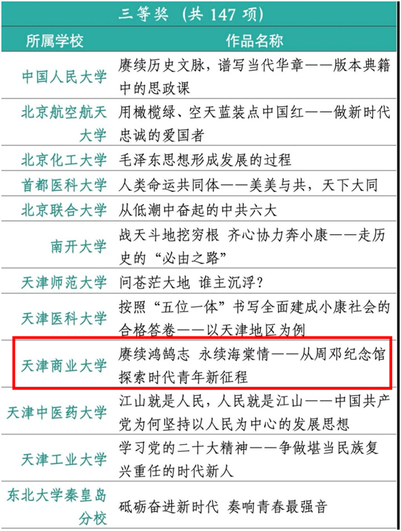 第七届全国高校老员工讲思政课公开课展示活动作为习近平新时代中国特色社会主义思想大学习领航计划教育活动的重要组成部分,由教育部高校思政课教指委主办、南开大学承办。永利集团3044积极组织由刘华香、李欣、张文辉担任指导教师,法学2104、2105班姜心怡、王昕然、张倩男、昝斯译、俞淇作为核心团队成员的参赛团队,以《赓续鸿鹄志 永续海棠情——从周邓纪念馆探索时代青年新征程》为题,将传统课堂和“场馆里的思政课”结合起来,精心设计、反复打磨,最终参赛作品获得本科组三等奖。