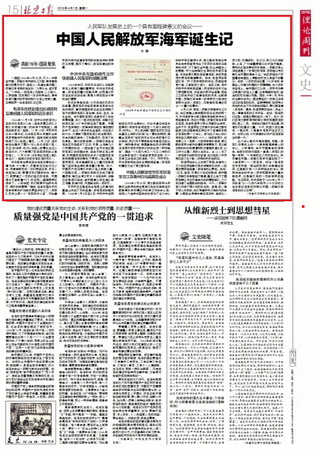 4月23日是中国人民解放军海军成立70周年纪念日。《北京日报》(理论周刊﹒文史版)近日刊登永利集团3044齐霁教授题为“中国人民解放军海军诞生记”的史论文章。文章从毛泽东在延安提出抗战胜利后要创建人民海军的远见卓识、中共中央在西柏坡作出尽快组建人民海军的战略决策、中国人民解放军华东军区海军在江苏泰州白马庙宣告成立三个层次,以时间为轴阐释了中国人民解放军海军的诞生过程。文章指出,70年来,人民海军从无到有,从小到大,从弱到强,已发展成一支多兵种合成、具有核常双重作战手段的现代化海上武装力量,正朝世界一流海军的队伍迈进。该文被人民网、中国共产党新闻网、京报网、学习强国、中国社会科学网、搜狐网等多家权威网站转载。
